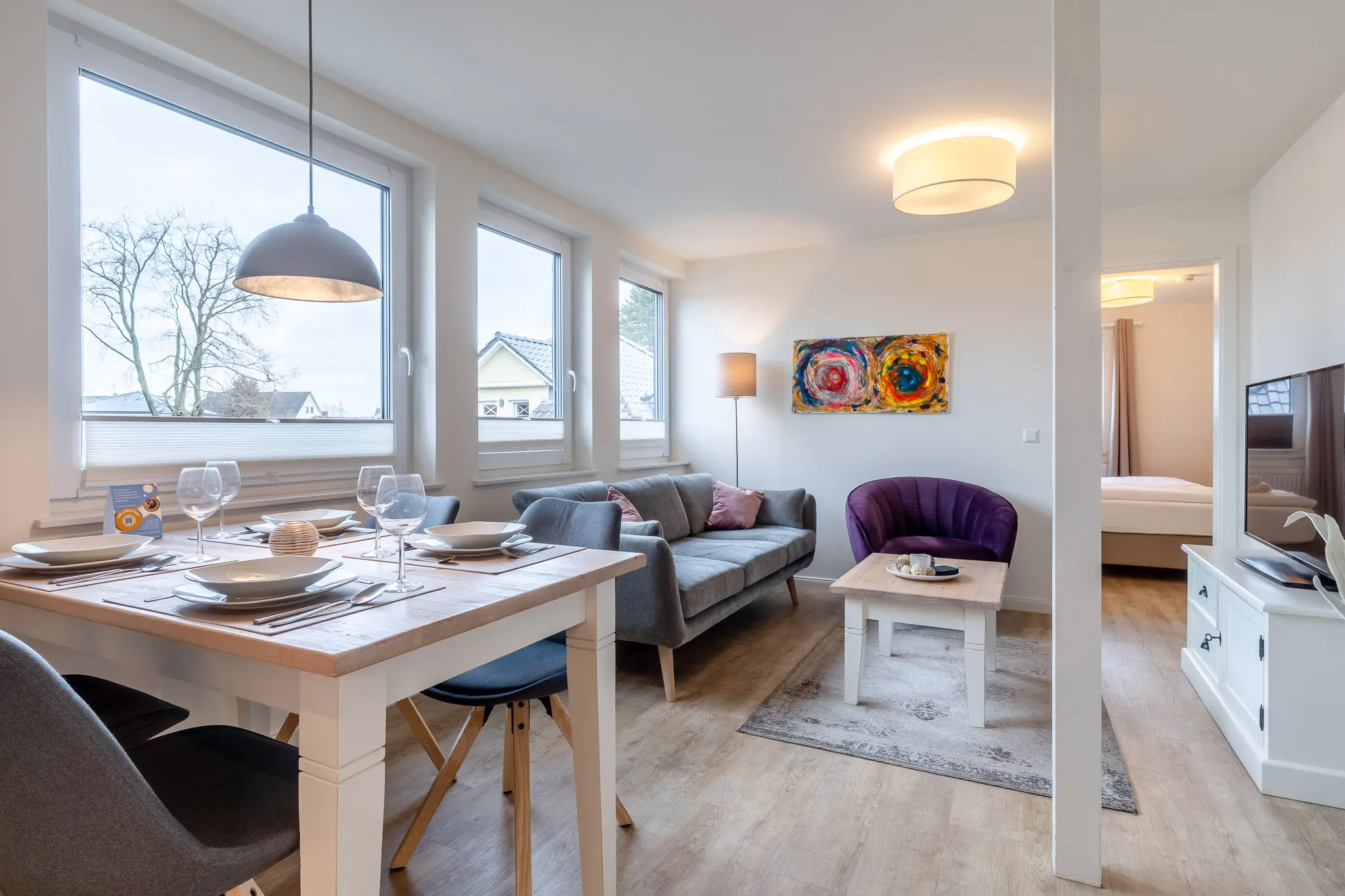 8 moderne Wohnungen in gemütlichem Landhausstil erwarten Ihren Besuch. Mit einem Klick auf ein Bild öffnet sich die Galerie-Ansicht der Wohnung.