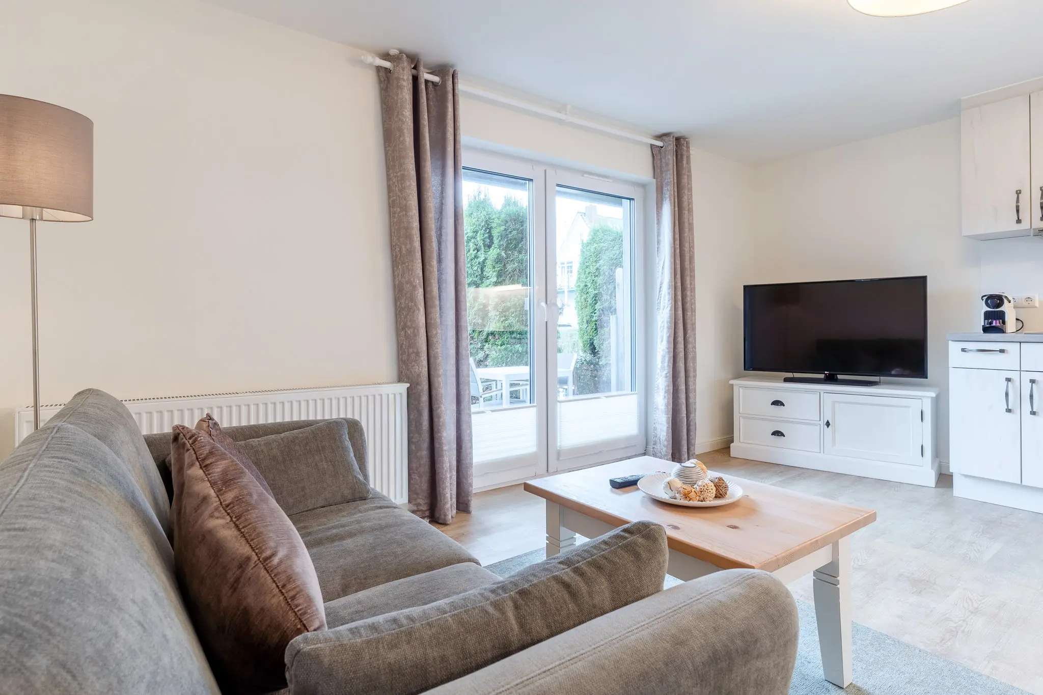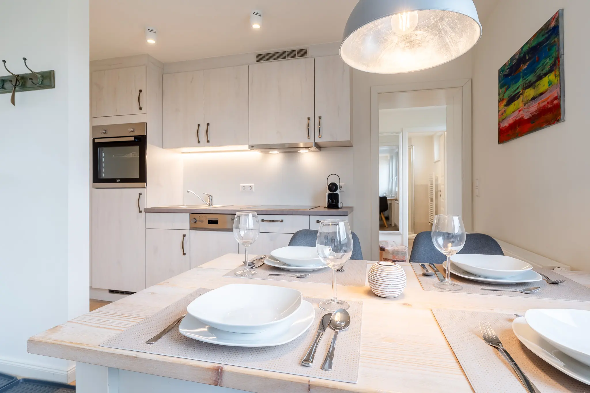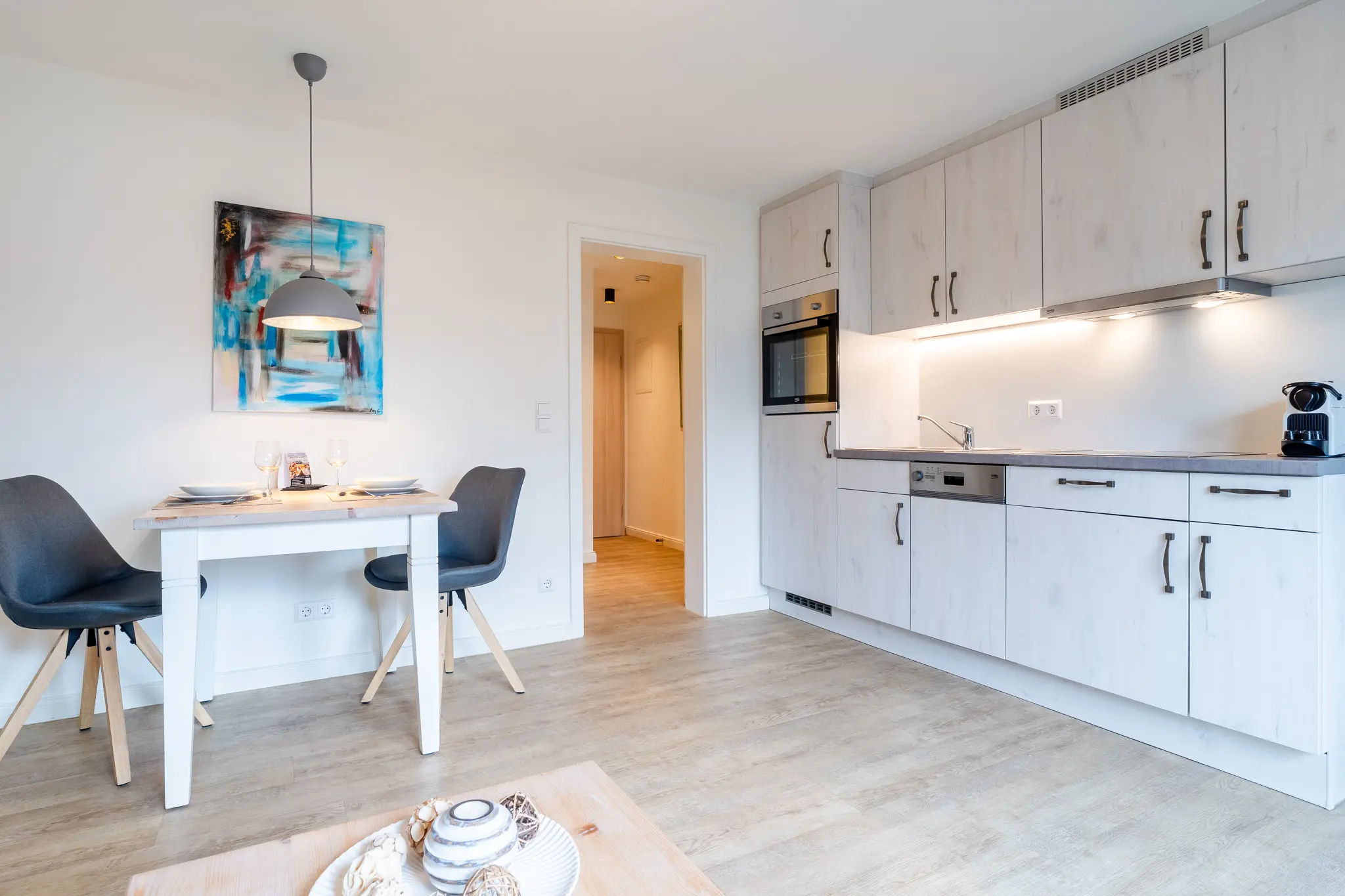 - Herd, Backofen, Kühl-/Gefrierschrank, Kaffeemaschine, Nespresso Kapselmaschine, Milchaufschäumer, Wasserkocher, Geschirrspüler vorhanden